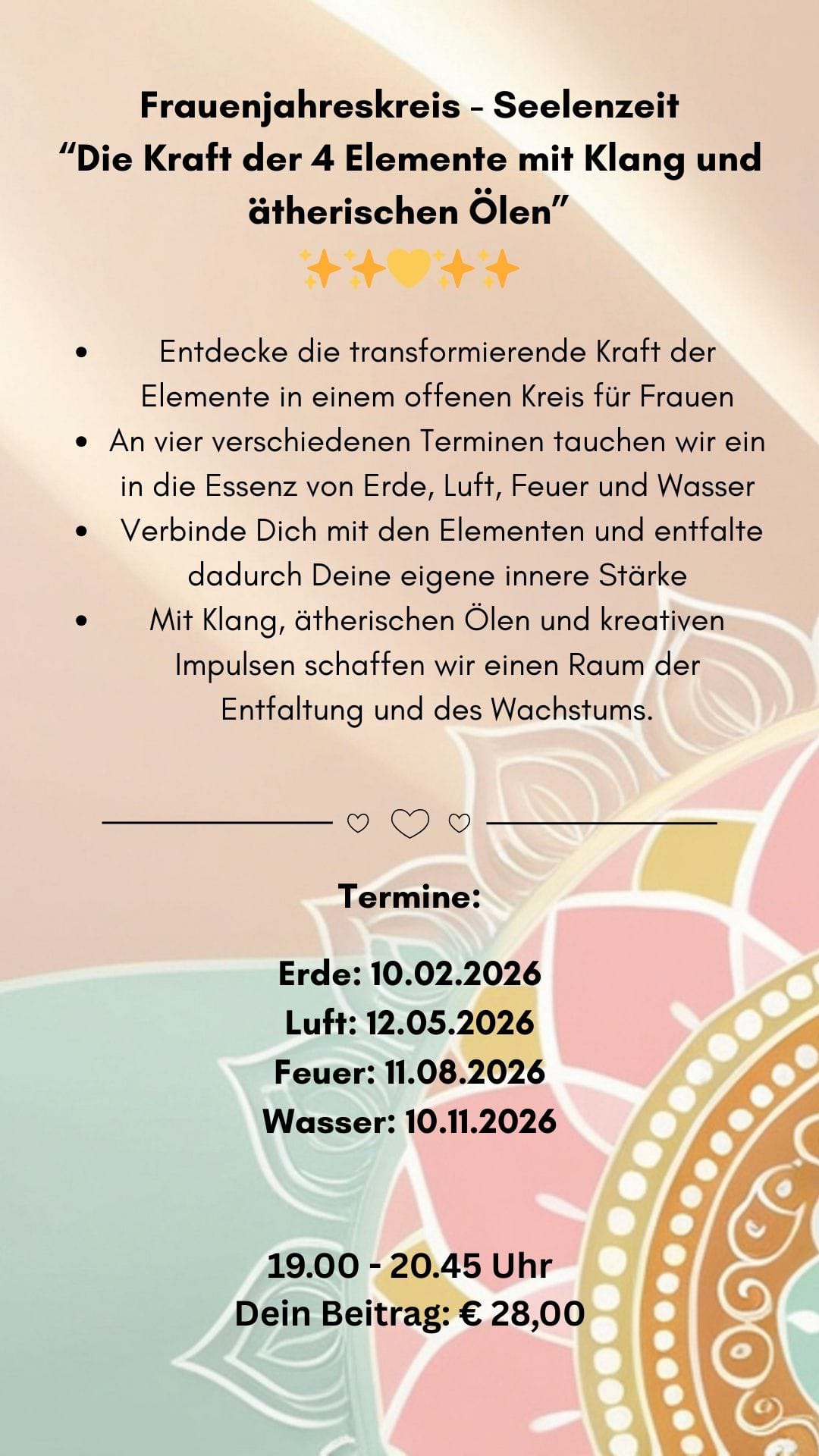 10.2. - ausgebucht12.05. - ausgebucht11.08. - ausgebucht10.11. - ausgebucht- gerne für Warteliste melden -